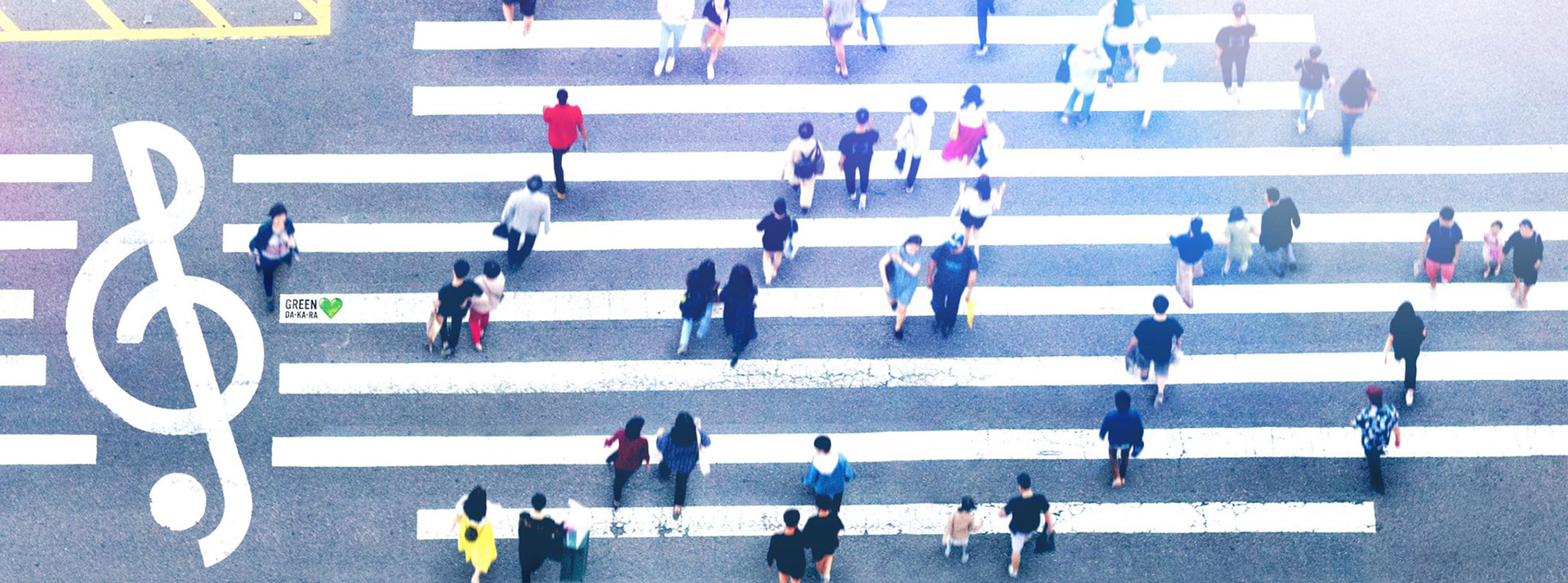 グリーン ダカラの広告で、人々が音符になる『横断譜道』を制作した。 人々が行き交う横断歩道に、「音色(個性)は多いほうが楽しい!」というメッセージを込めた。