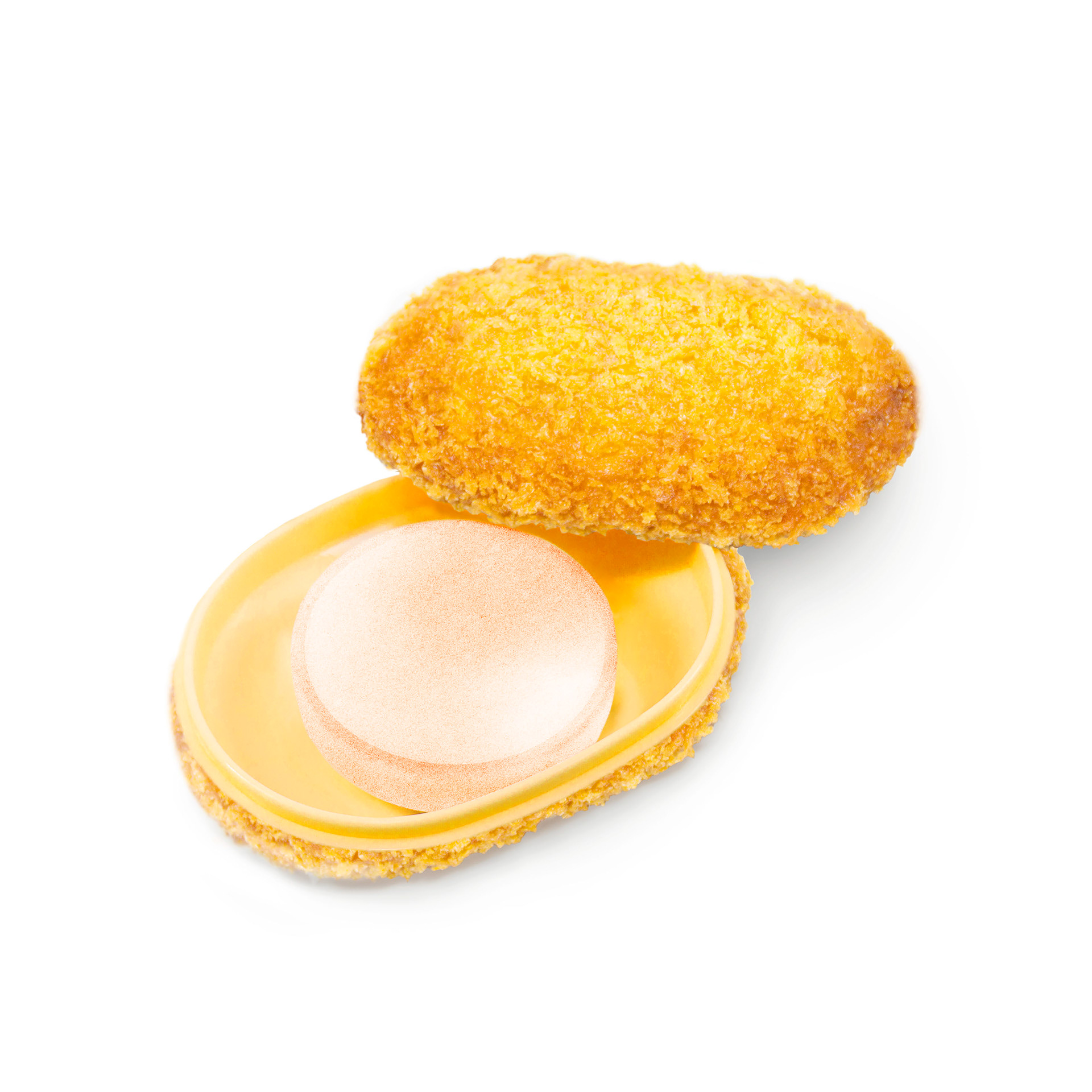 コロッケの形をした固形入浴剤プラスチックケース。(コンセプト画像)