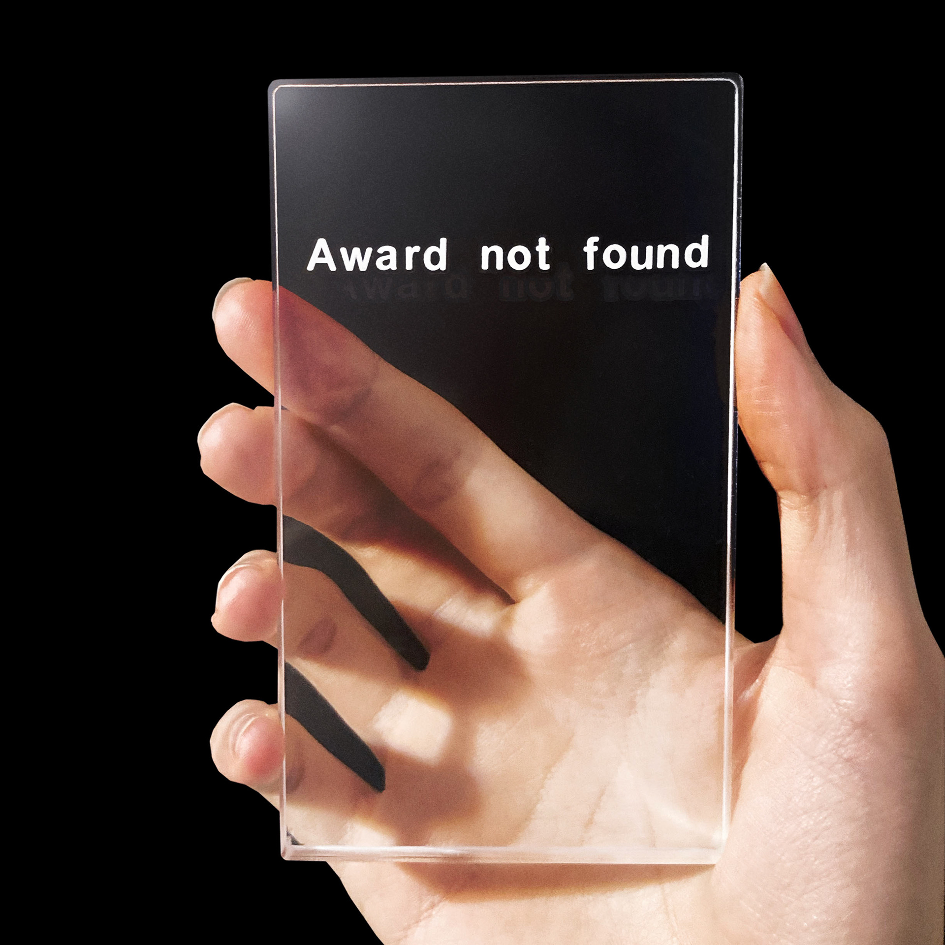 PC上でのページ表示エラーをモチーフにしている。透明なアクリルブロックであるため存在感がなく、受賞歴がゼロであることを物理的に感じることができる。