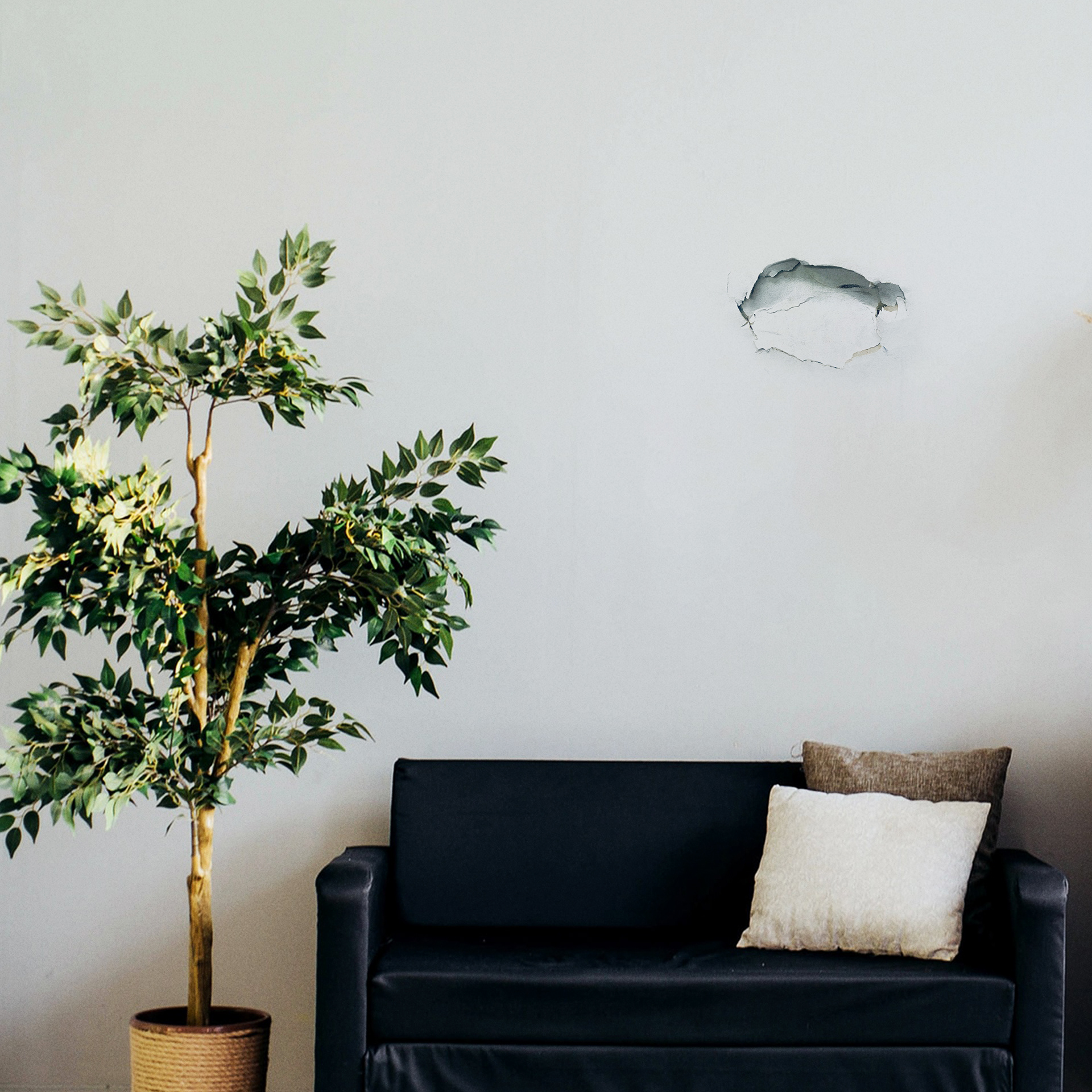 画鋲などを使用せずに貼ることができる吸着ターポリン素材であるため、絆創膏のようにペタッと貼ることができる。根本的な解決にはならないが、ユーモアをもって壁の傷などを隠すことができる。