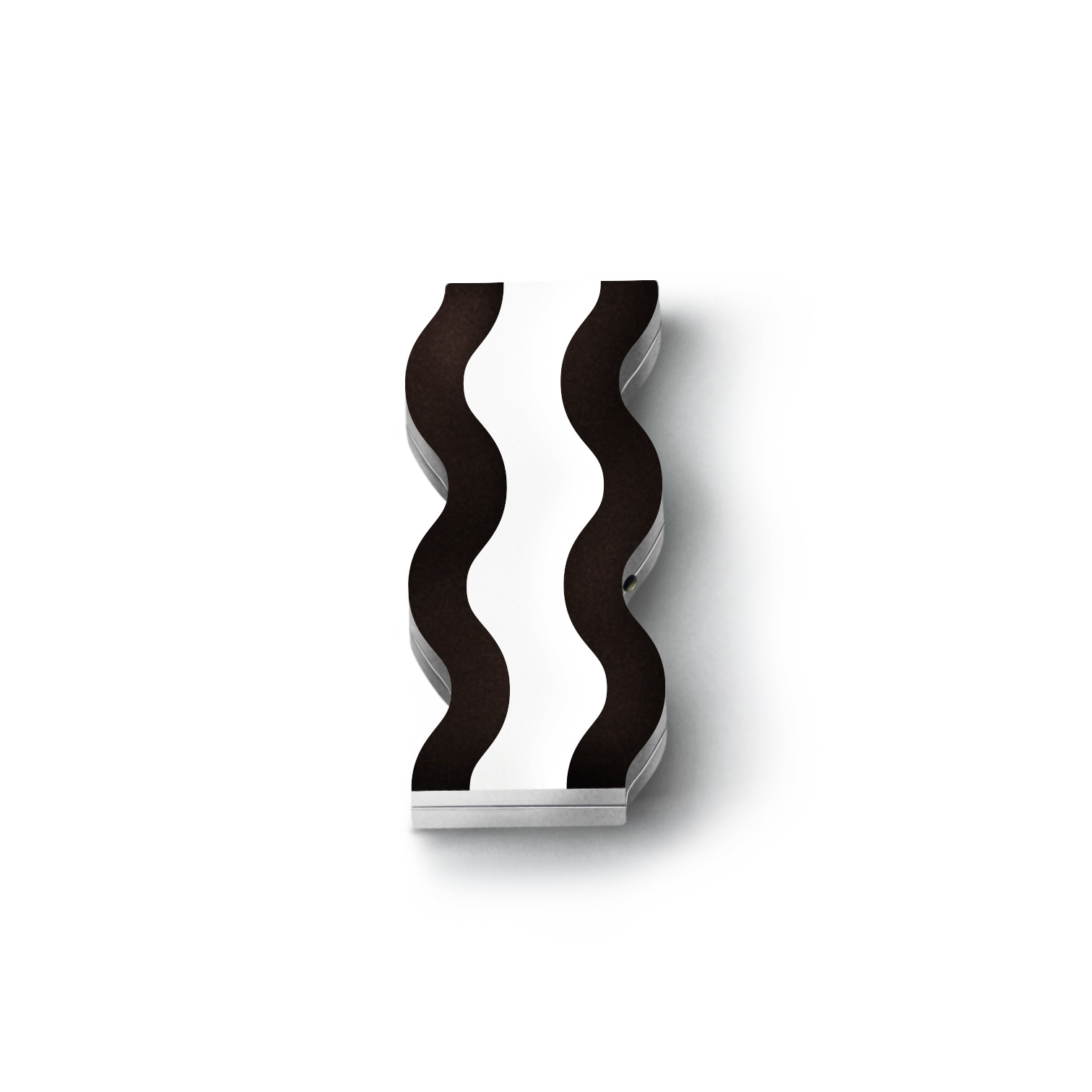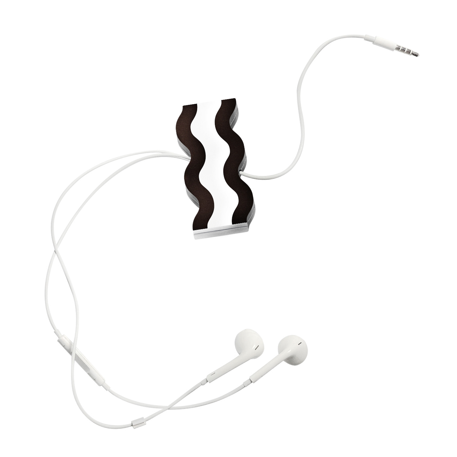 有線イヤホンを収納できる、省略波線の形をしたイヤホンケーブルリール。グラフ上で用いられる場合、スルーされてしまう省略部分を実体として触ることができる。